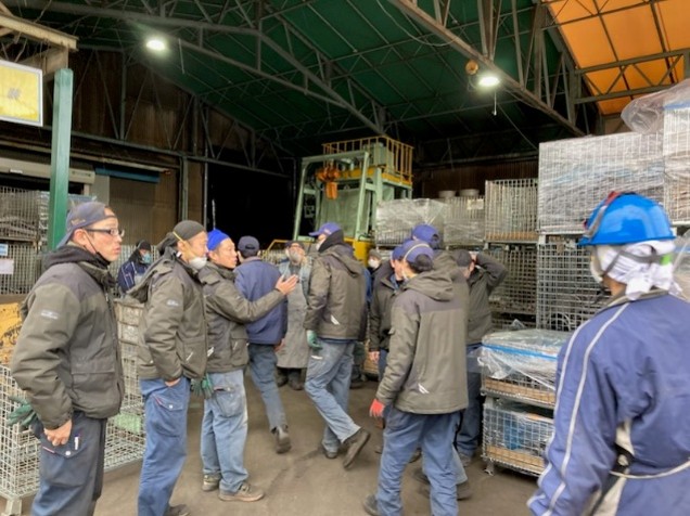 | 点呼確認後、事務所前に移動をして社長より総括してもらいました。 | |||||||