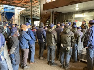 | 本来は外で集まりますが、当日はあいにくの雨だったので出荷場に集合です。 | |||||||